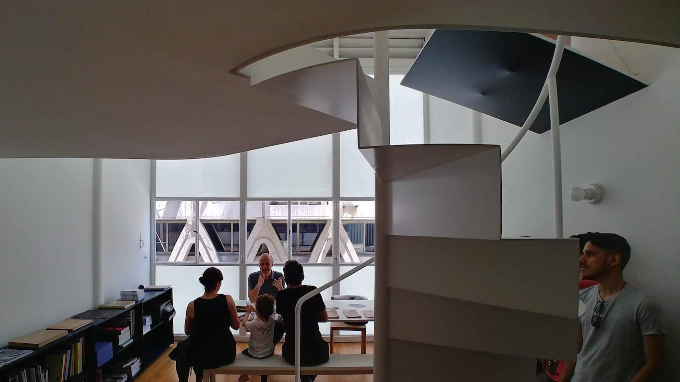 El resultado fue un conjunto de cuatro locales comerciales en planta baja y siete estudios de artistas en los pisos superiores, cada uno con un entrepiso pensado como espacio de descanso. La terraza se concibió como lugar de encuentro y dispersión, completando la visión comunitaria del proyecto.