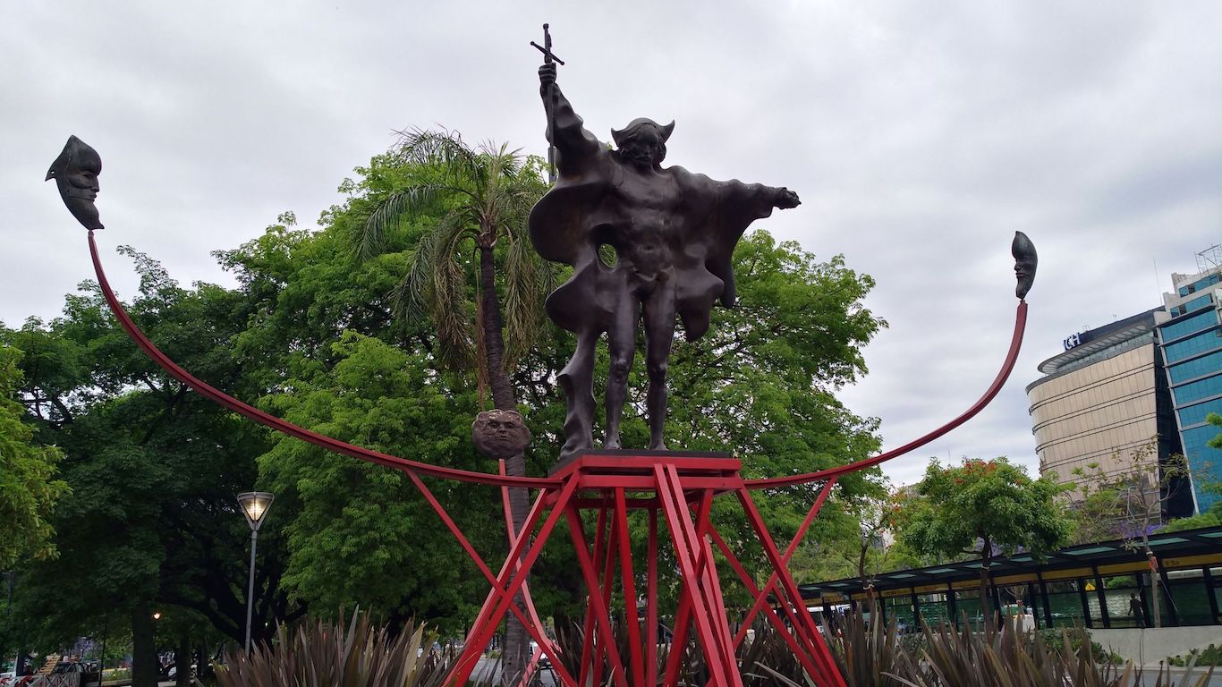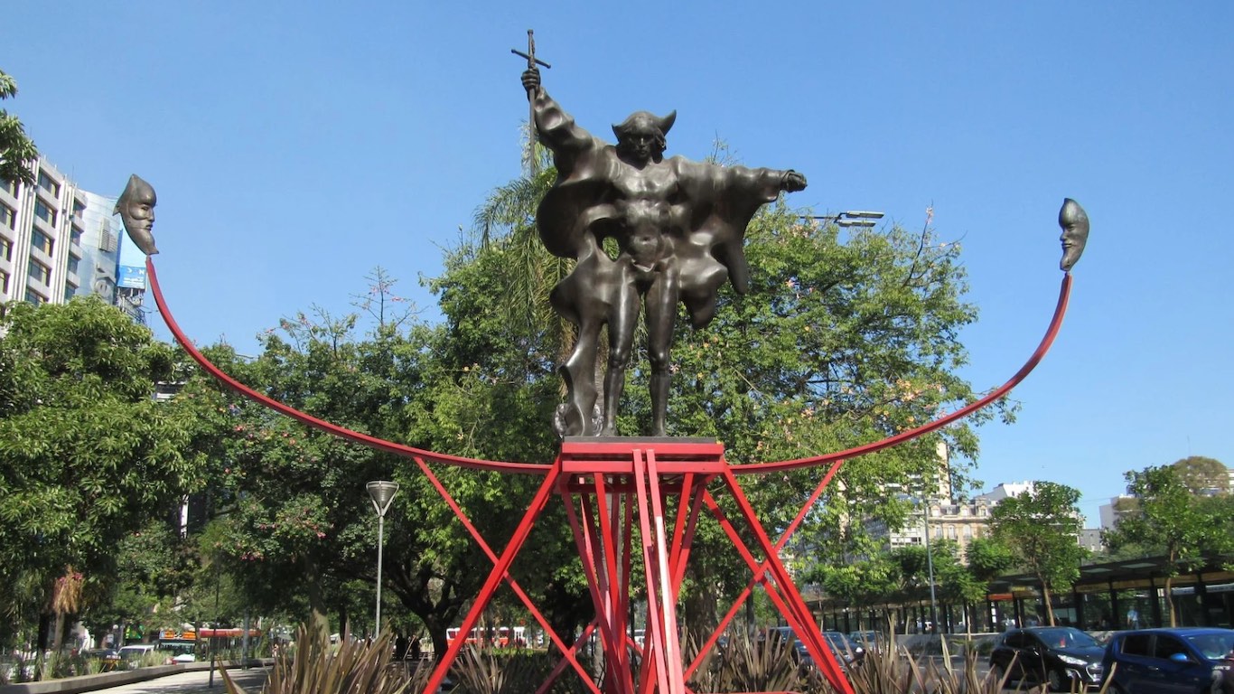 Inaugurada el 13 de junio de 1993 en Buenos Aires, en el marco de las conmemoraciones por el V Centenario de la llegada europea al continente americano, la obra fue donada por el Comitato Nelle Americhe (Comité en las Américas, una organización de origen italiano creada con fines culturales y conmemorativos) y formalizada a través de la ordenanza municipal Nº 46.307. Desde entonces, en la plazoleta de Avenida Santa Fe y 9 de Julio, se consolidó como una de las piezas más singulares del arte público de la ciudad.