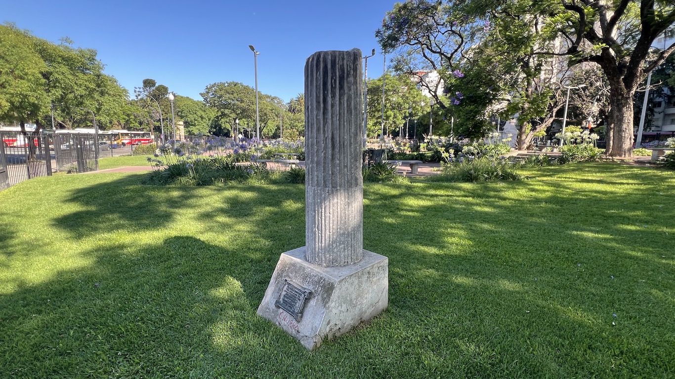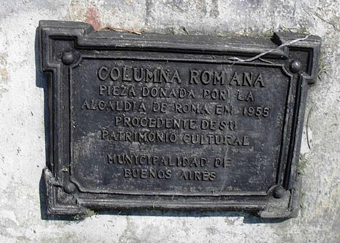 Tallada en mármol, de 1,9 metros de altura y 55 centímetros de diámetro, la columna pertenece a ese pasado remoto. Su presencia en Buenos Aires se explica por un gesto diplomático: en 1955, la Alcaldía de Roma decidió donarla a la Argentina como símbolo de amistad entre ambas ciudades. Su primera ubicación fue la intersección de la avenida del Libertador y Luis María Campos, en Palermo, pero en 1984 se trasladó a Plaza Italia, donde permanece desde entonces.