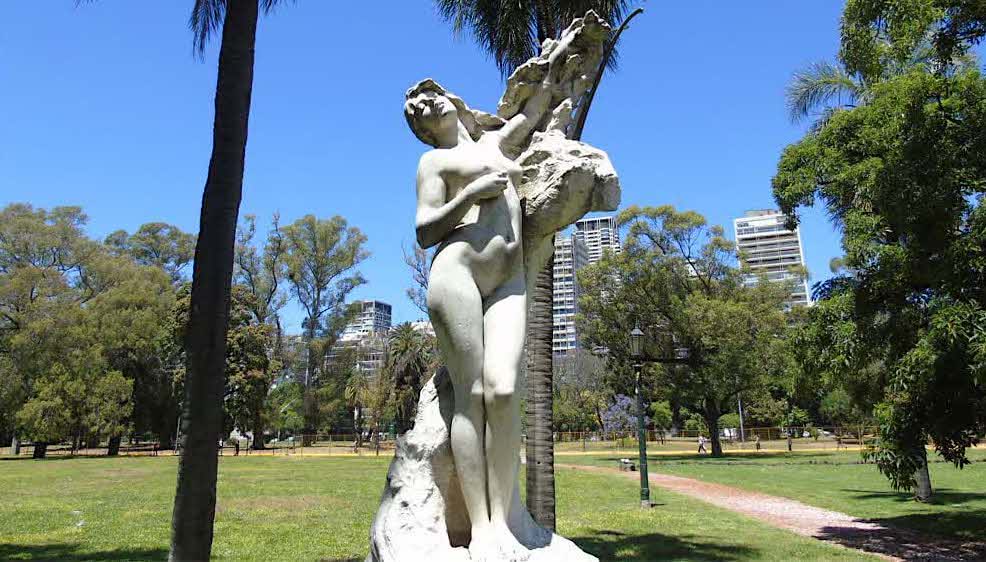 Entre los senderos arbolados del Parque Tres de Febrero, en el cruce de la avenida Infanta Isabel y Coronel Marcelino Freyre, a metros del lago, se alza una de las esculturas más sugestivas del patrimonio artístico de la ciudad: La Cigale. Tallada en mármol de Carrara por el escultor francés Félix Maurice Charpentier (1858–1924), la obra fue inaugurada en 1908 y desde 2019 ostenta la declaración de Monumento Histórico Nacional.