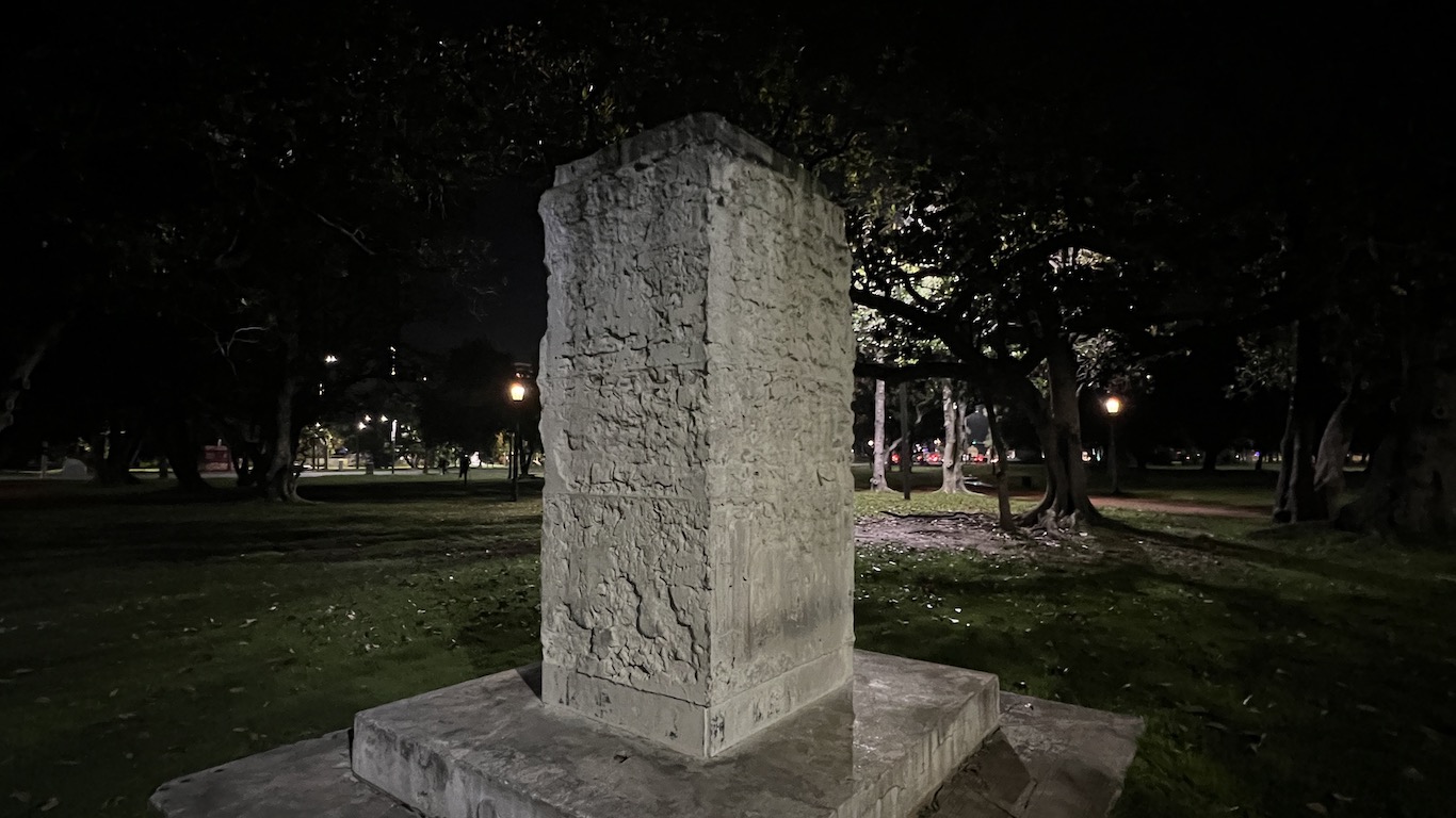 Pocos se detienen a leerlo. Los runners pasan de largo, las parejas lo usan como punto de encuentro y los turistas creen que la escultura o es una obra minimalista o que fue retirada por restauración. Sin embargo, detrás de esa ausencia hay una historia que Buenos Aires prefirió sepultar.