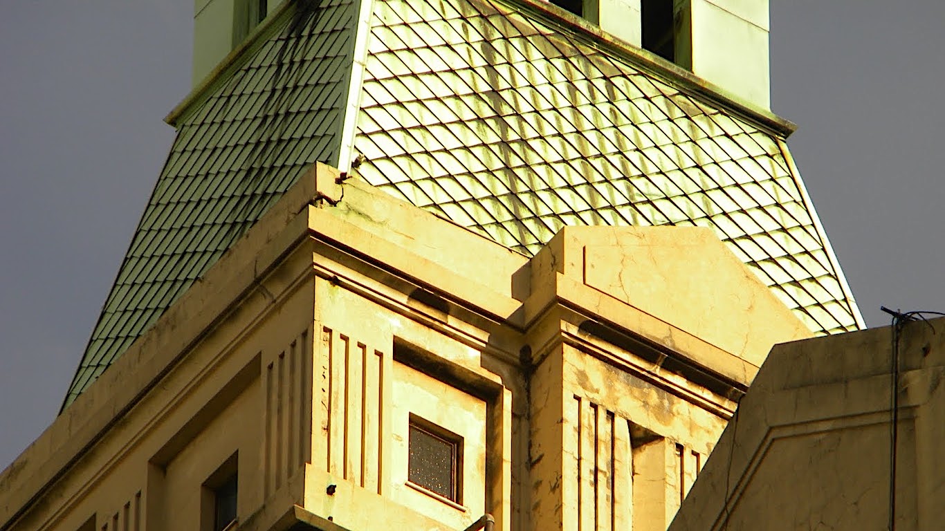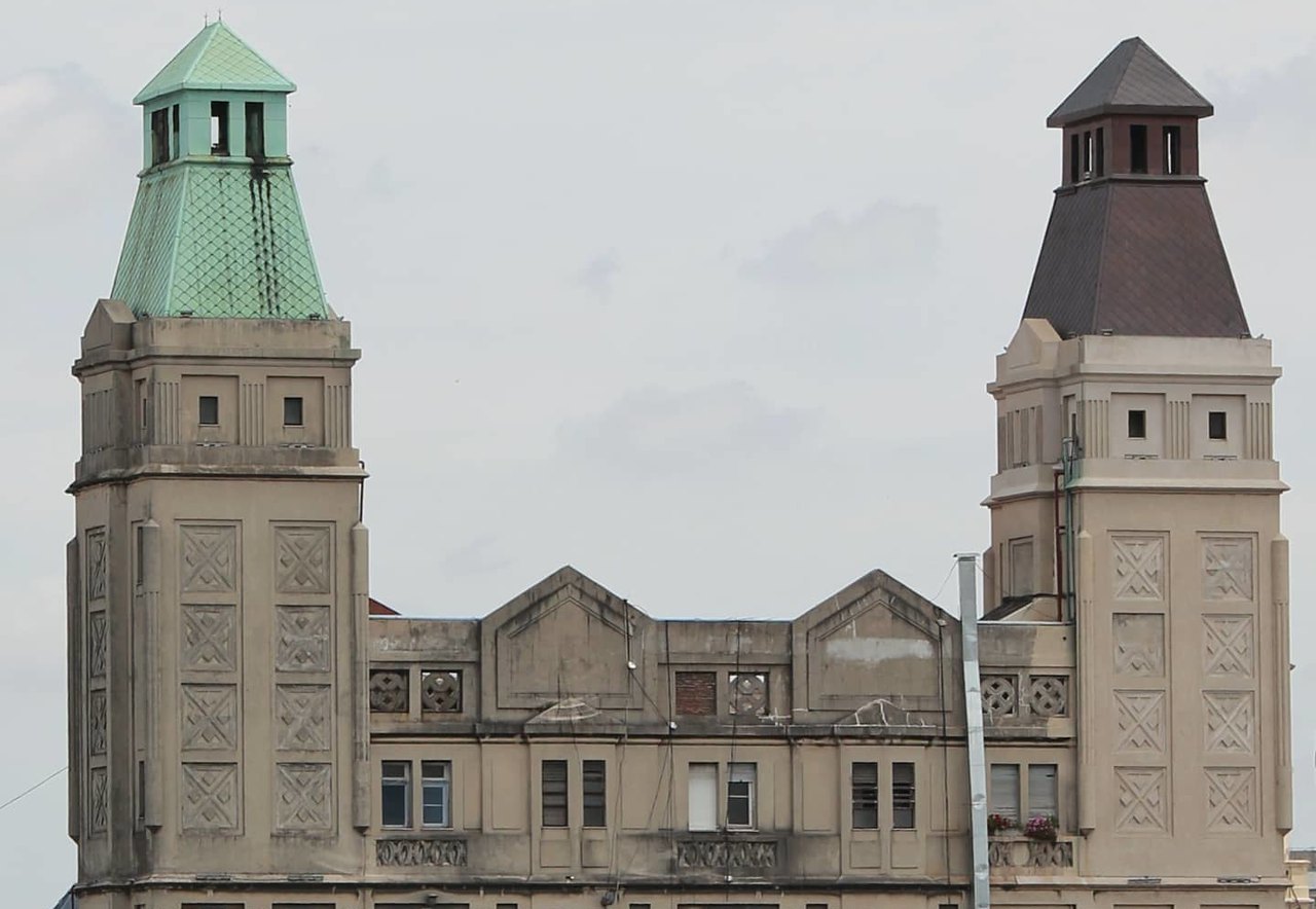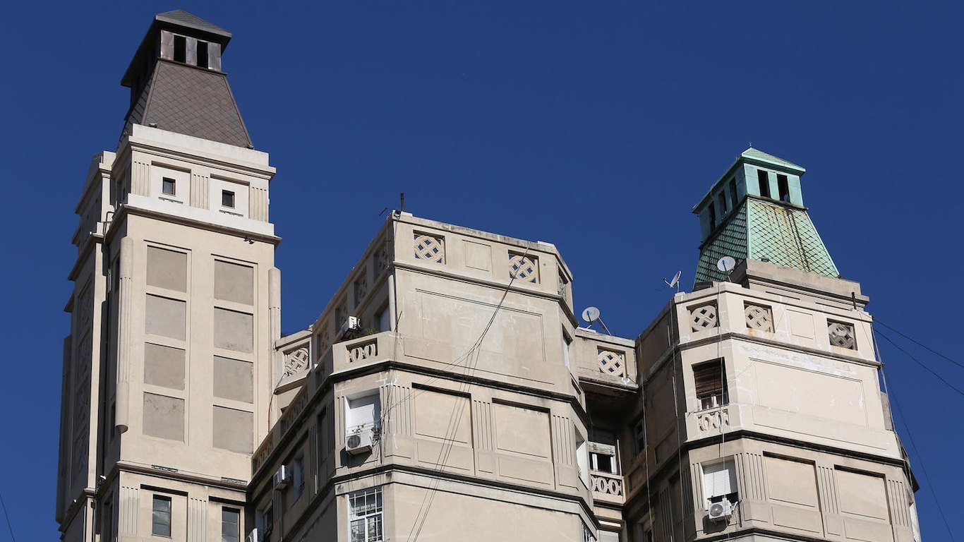 Esa impronta se expresa en una profusa y ecléctica ornamentación, donde conviven pilastras de inspiración egipcia, columnas de raíz clásica, contrafuertes góticos, urnas griegas y templetes de tradición sajona, integrados con líneas geométricas propias del decó. El conjunto remata en dos cúpulas gemelas que se orientan hacia el interior de la manzana y que, por su ubicación, resultan difíciles de percibir desde la vereda. Una de ellas sufrió daños a raíz de un incendio ocurrido décadas atrás y permaneció sin restaurar durante largos años.