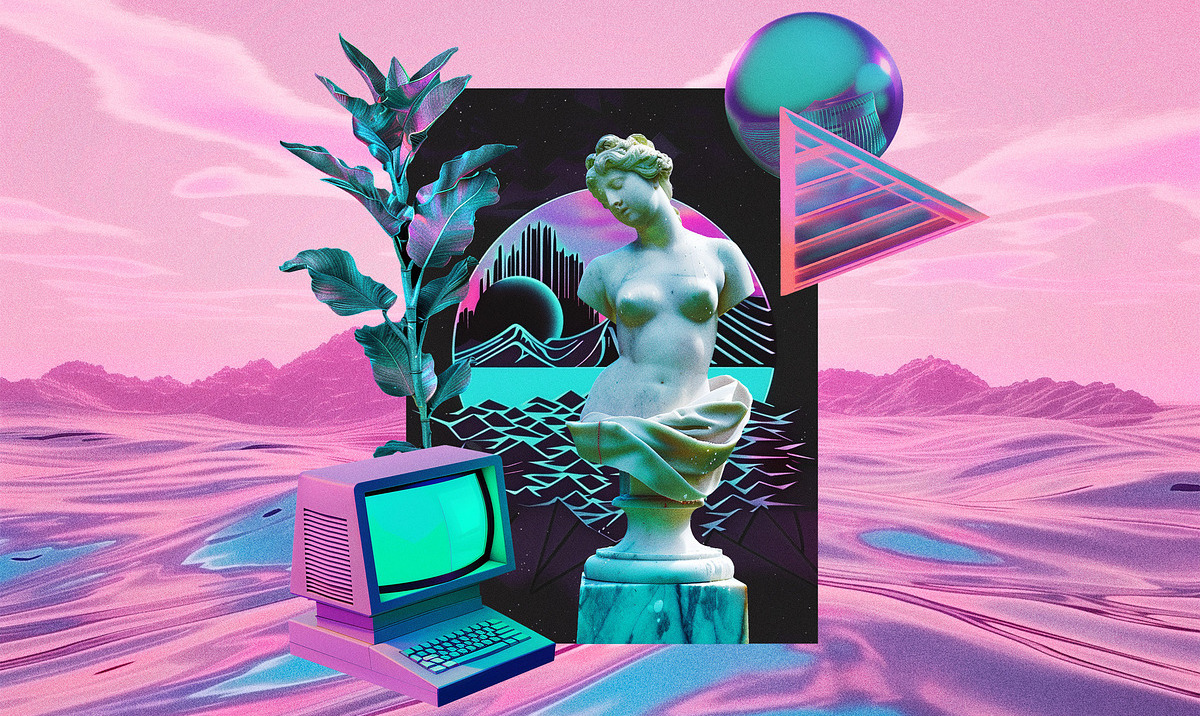 La génesis de lo que se conoce como vaporwave se dio entre 2010 y 2011 en los rincones más recónditos de Internet. Eso, que por aquel entonces todavía no tenía nombre, eran canciones construidas con fragmentos de jazz suave, melodías de ascensor y publicidades de los ochenta —todo ralentizado, distorsionado y saturado de reverb— ensambladas sobre imágenes con columnas griegas, computadoras viejas y amaneceres de neón sobre el océano. Un experimento sonoro, pero también visual, que sin proponérselo demasiado consiguió construir un universo inmediatamente reconocible.