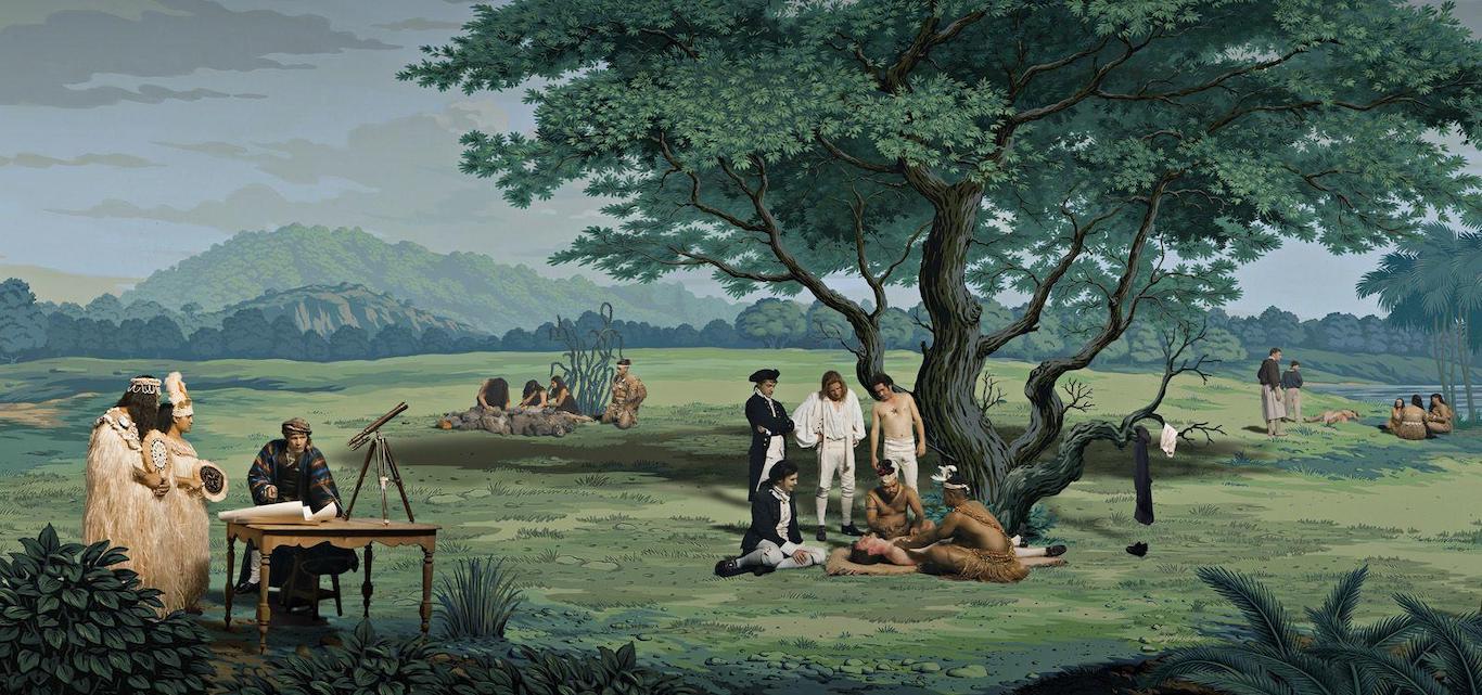 Mezcla de pintura histórica llevada al cine y de panorama para el siglo XXI, la obra de Reihana puede considerarse un hito del arte en su fase decolonial. Sobre todo, porque lejos de ofrecer un remix conceptual de la artesanía (categoría en riesgo) como se suele pedir y celebrar, cuenta la historia de Europa con ojos maoríes. Y eso sí es invertir el mapa. Aunque tuvieran que pasar doscientos años para que el artificio decorativo se convirtiera en arte contemporáneo con los ojos de una salvaje del Pacífico.