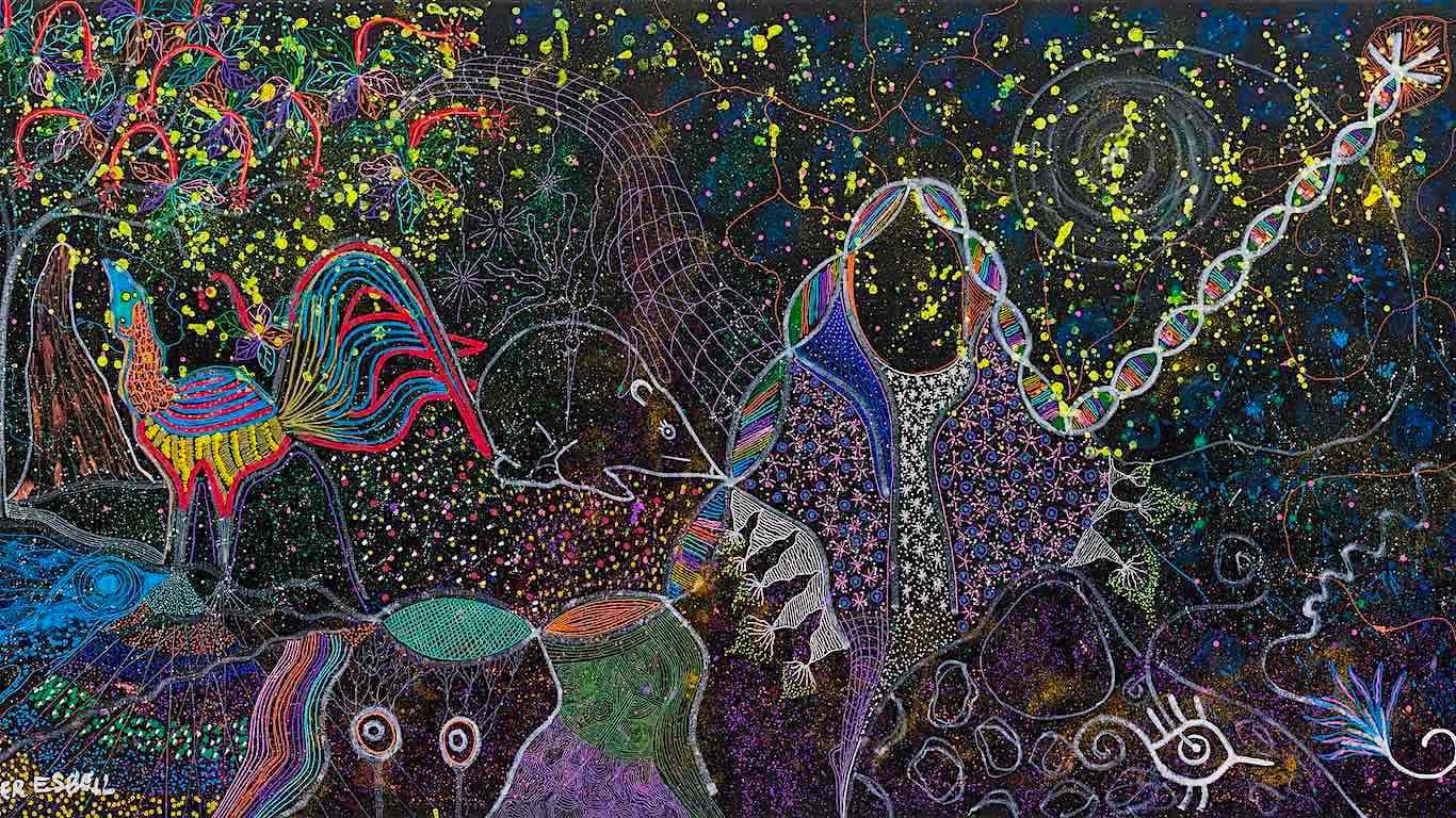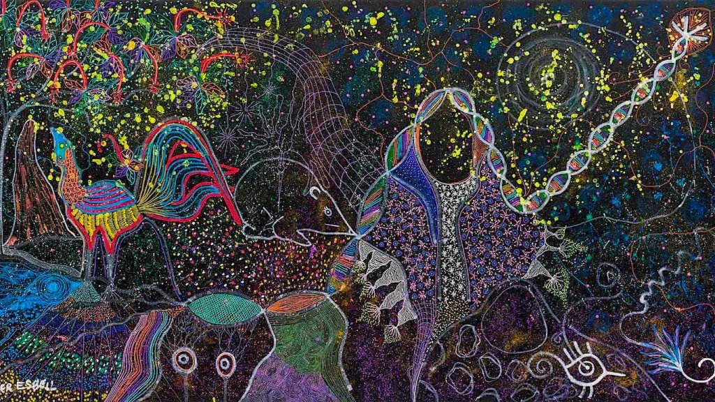 Esta pintura de Esbell fue adquirida recientemente por la colección del Museo de Arte Latinoamericano de Buenos Aires (MALBA), junto a otras obras de arte indígena, “con el objetivo de continuar con la representación de producciones culturales del continente desde una perspectiva plural e inclusiva”, según informó la institución.