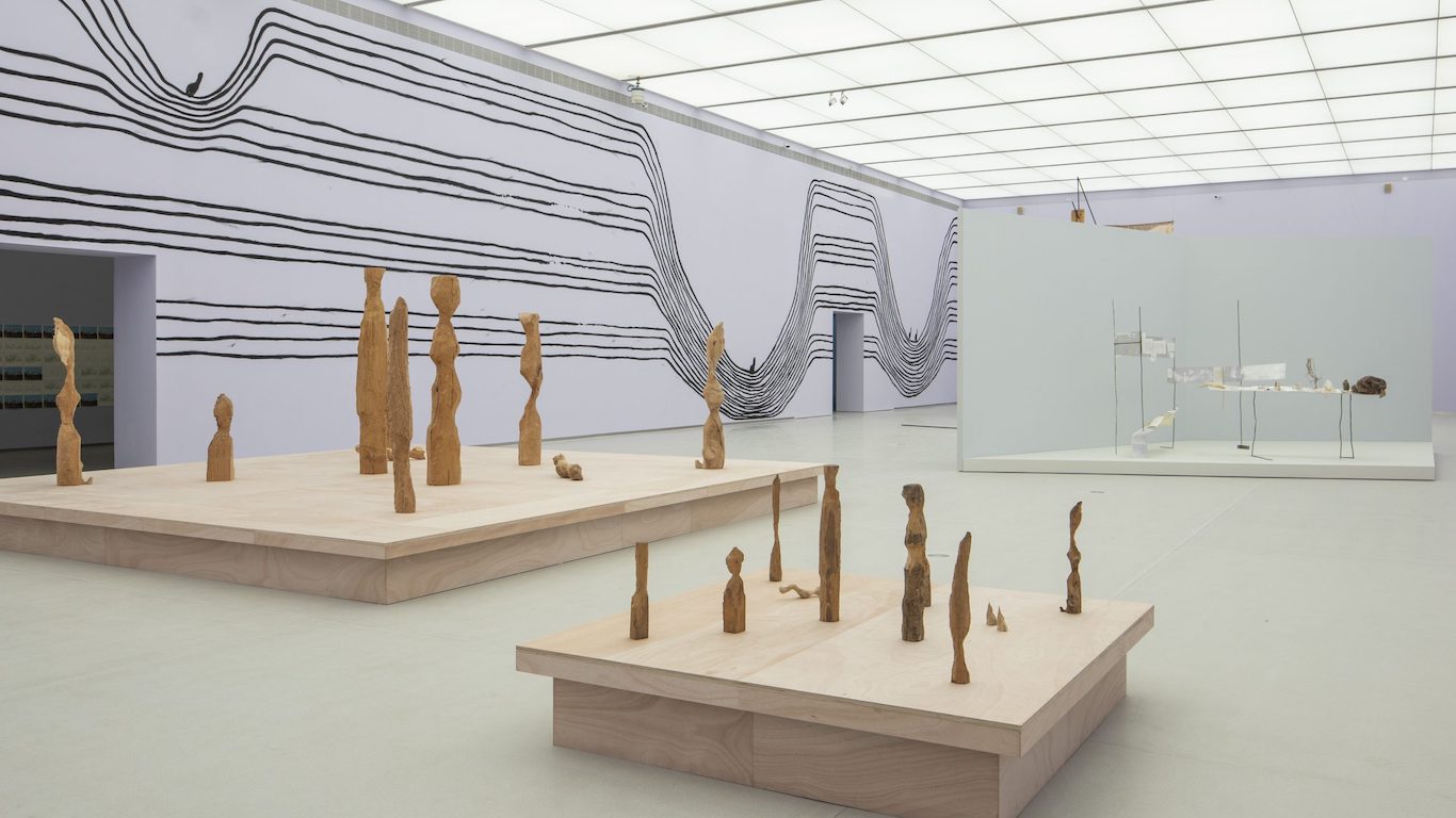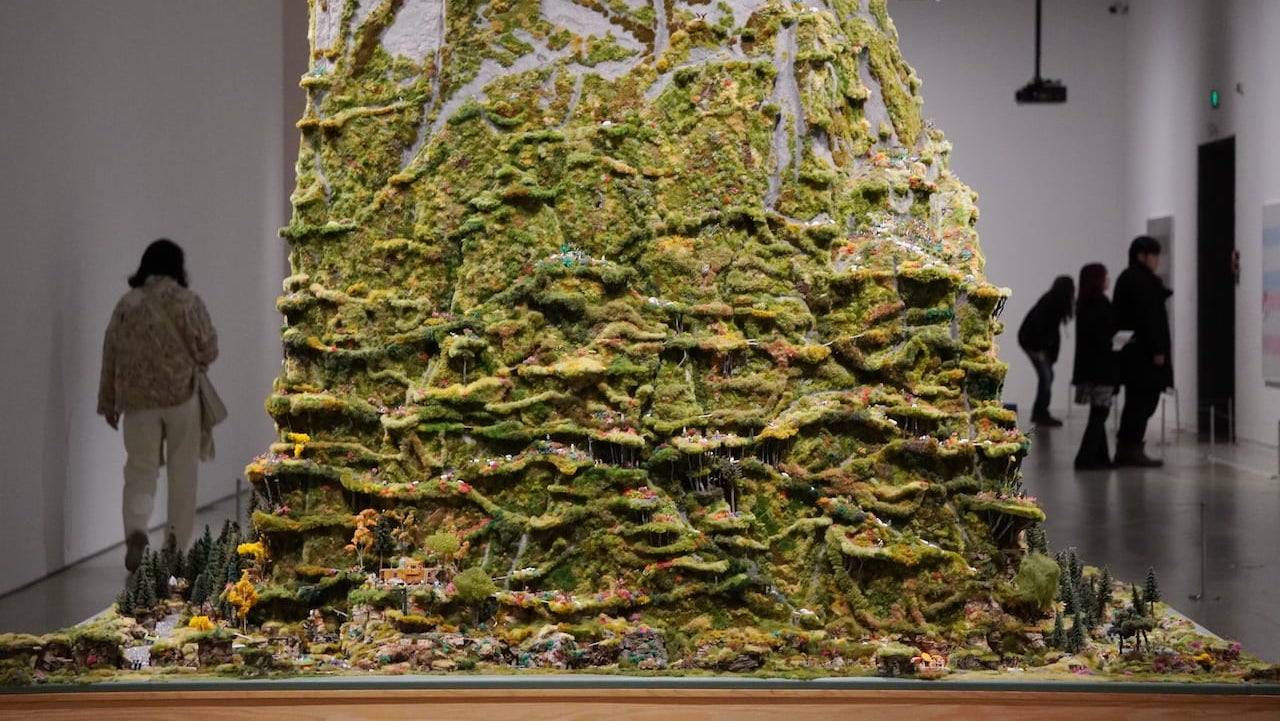 La exhibición reúne más de 250 obras de 67 artistas y colectivos, con una presencia no dominante de artistas chinos (podrían haber sido más) y de varios trabajos especialmente comisionados. El recorrido no sigue una lógica lineal ni jerárquica, sino que las obras se despliegan como un bosque o un paisaje abierto, pensado para ser habitado más que recorrido. Las piezas aparecen salpicadas en la gran nave central, se filtran por los pasillos, se esconden en salas cerradas. No hay un camino prescripto, sino una topografía a explorar.