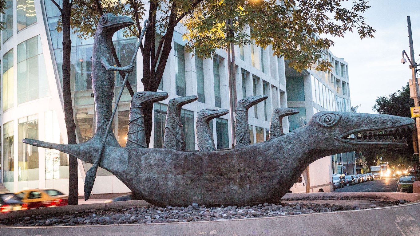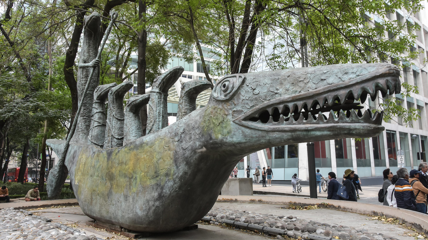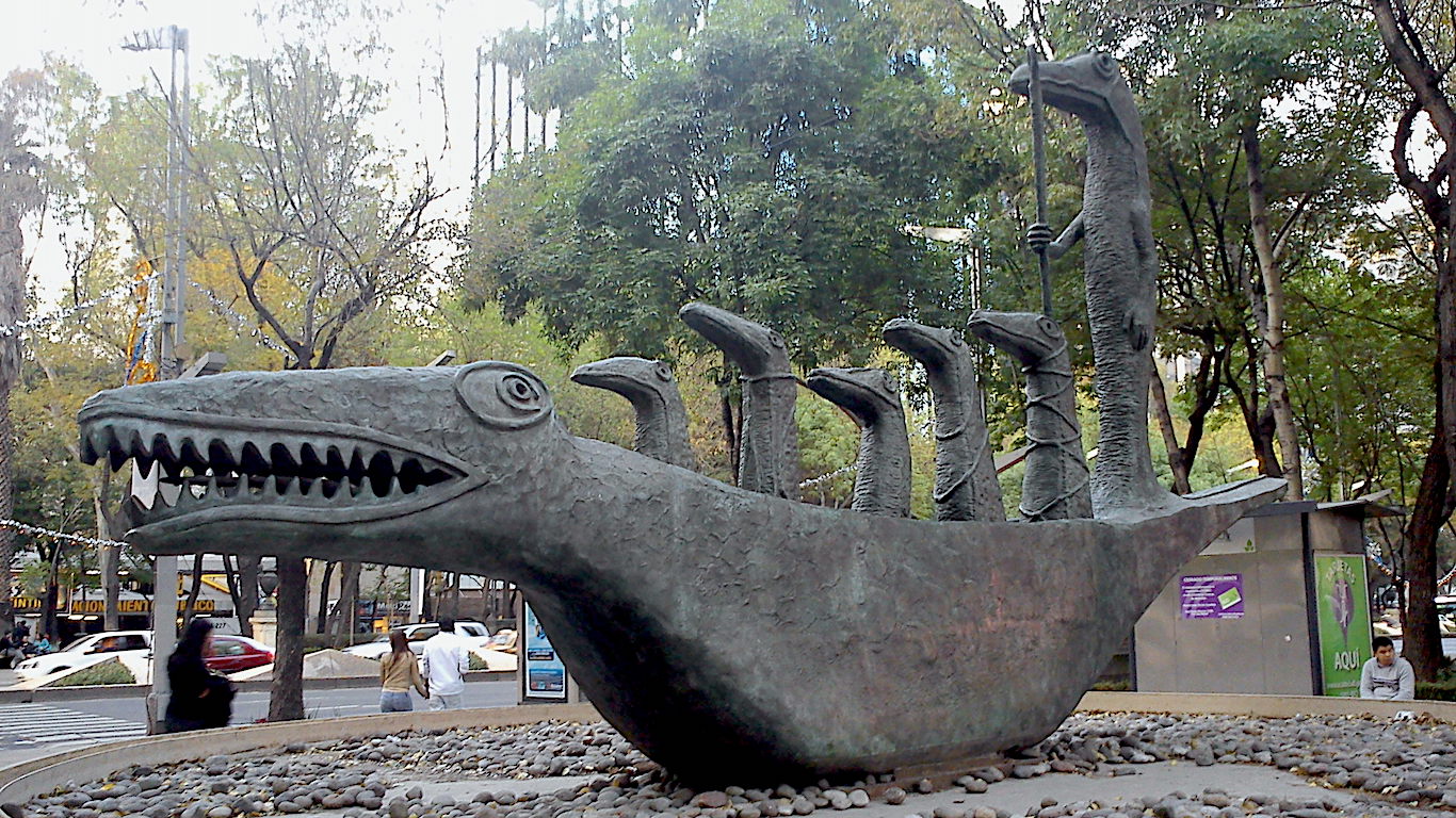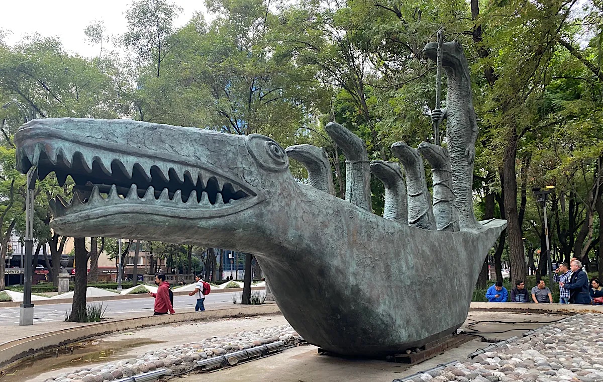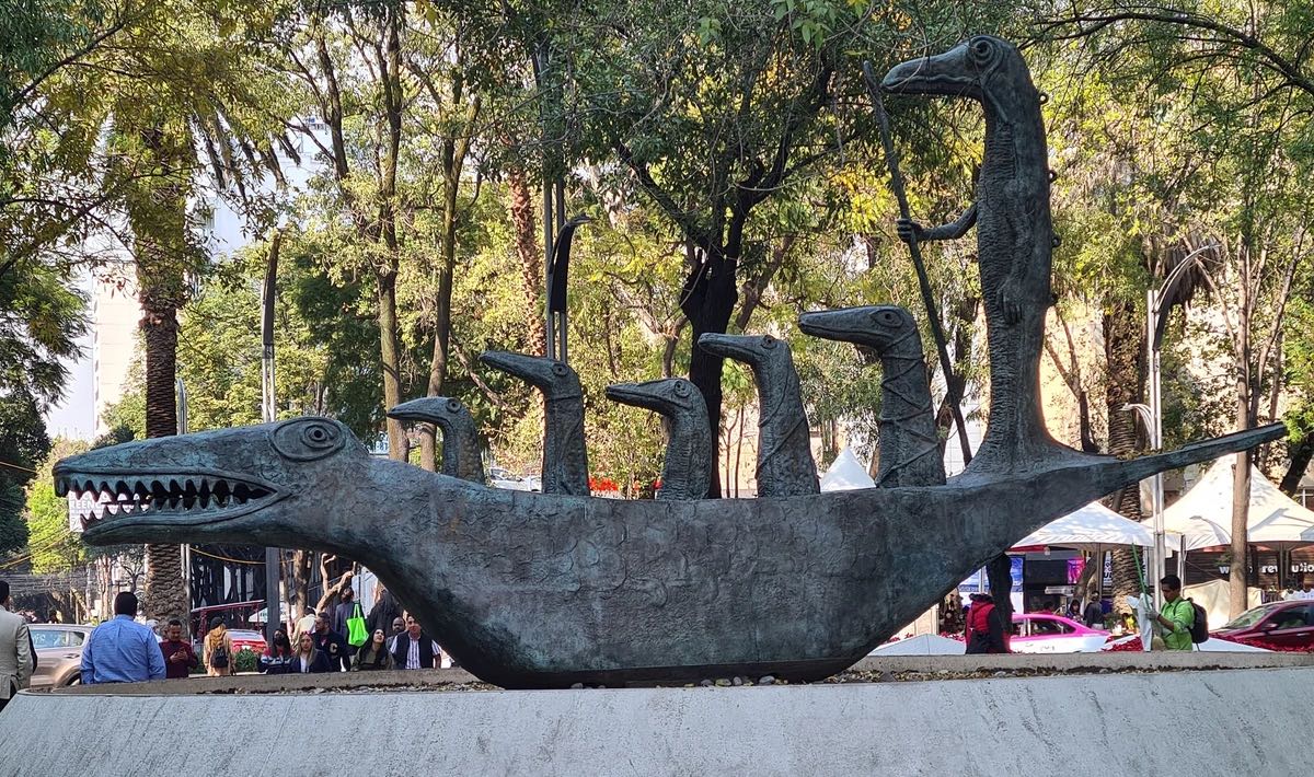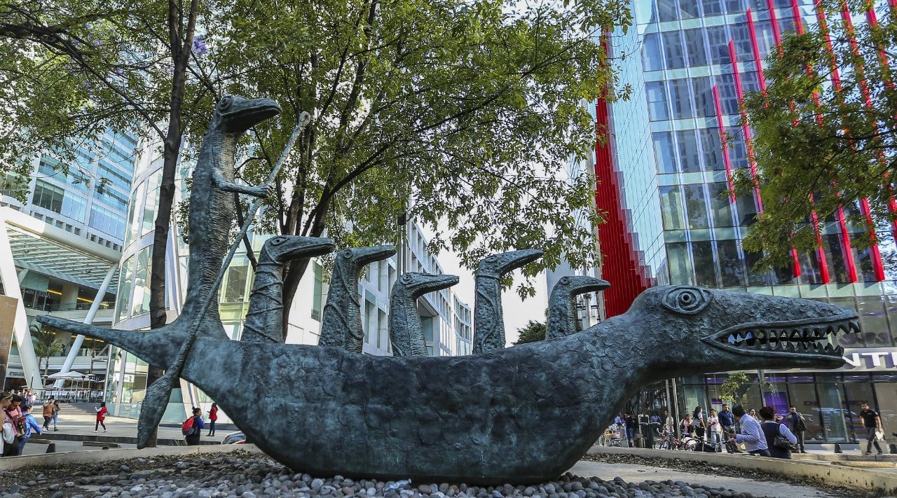 Al caminar por el Paseo de la Reforma, una de las avenidas más importantes de Ciudad de México, irrumpe una figura de bronce de 8,5 metros de largo, 4,8 metros de alto y 5 toneladas de peso que obliga a detenerse. Se trata de ¿Cómo hace el pequeño cocodrilo?, la obra de la artista inglesa Leonora Carrington. En ella una embarcación con la forma del animal conduce a seis figuras de la misma especie. Creada originalmente como una pintura en 1998, ambas se inspiraron en el poema homónimo de Lewis Carrol, autor de Alicia en el país de las maravillas e incluído en esa misma novela.