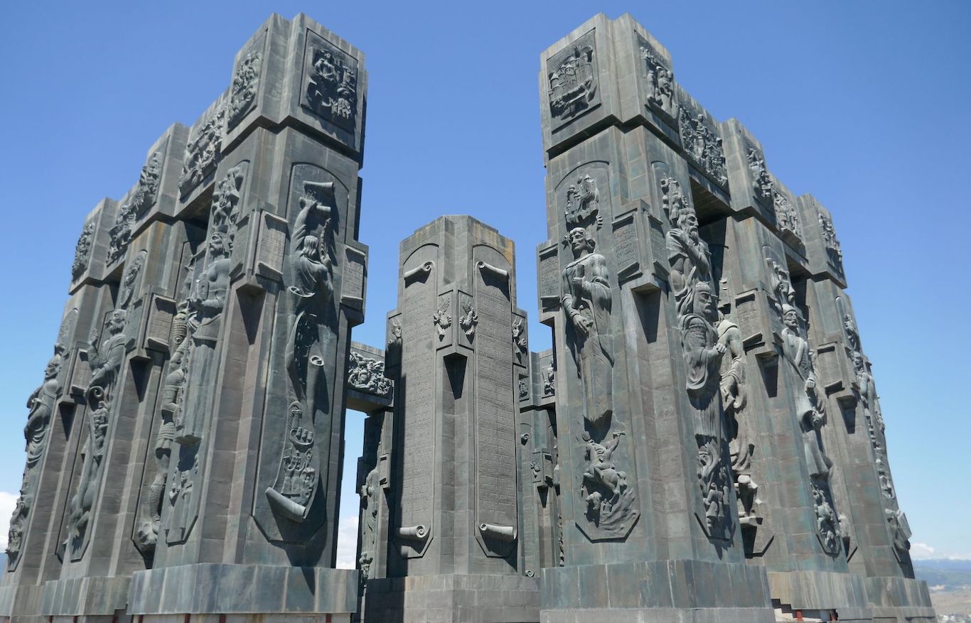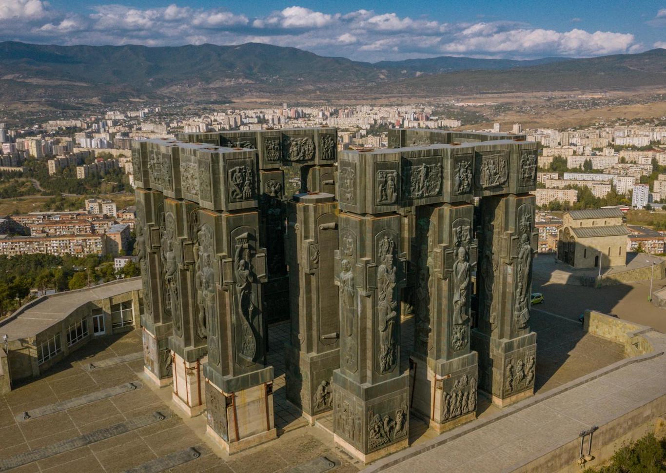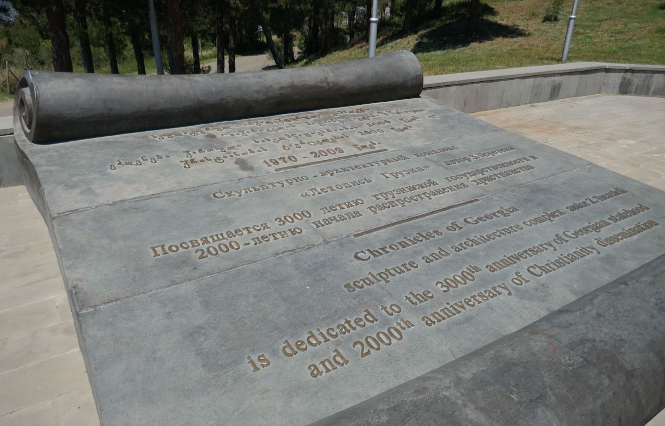 En lo alto de la colina Keeni, sobre el lago artificial conocido como “Mar de Tiflis”, se alza la Crónica de Georgia, un monumento que, como una suerte de gigante de piedra y bronce, observa la arquitectura medieval de la capital de ese país, situado geográficamente en la intersección de Europa y Asia.