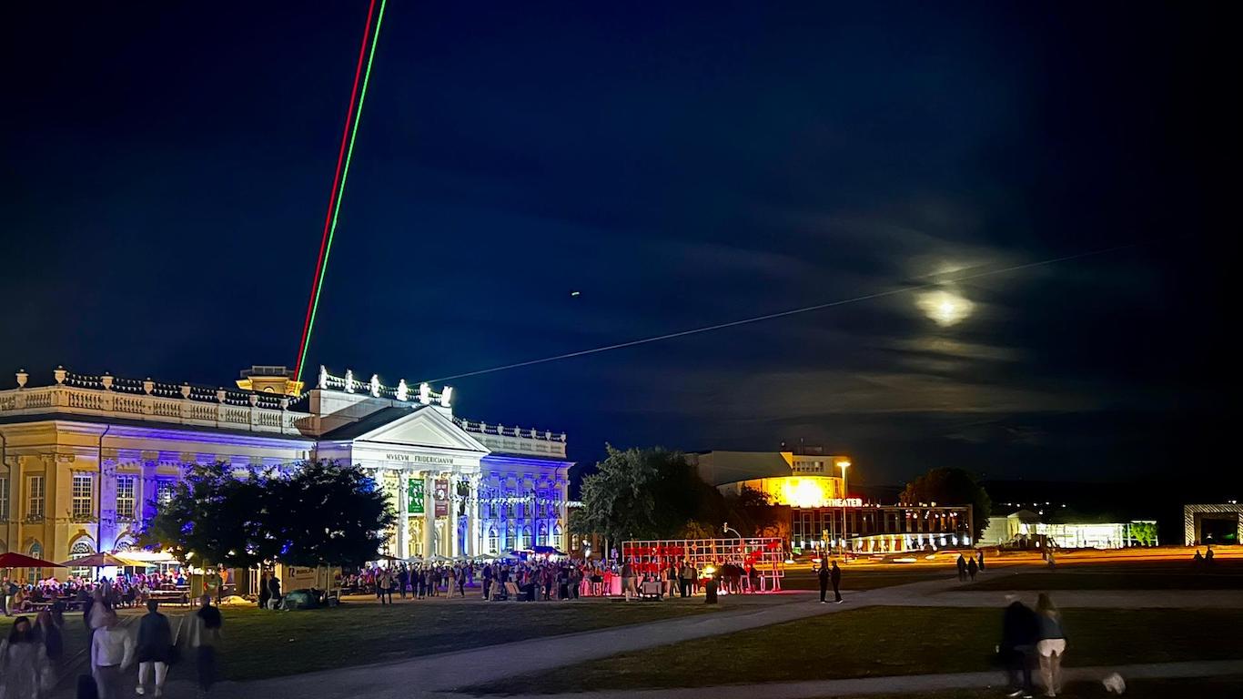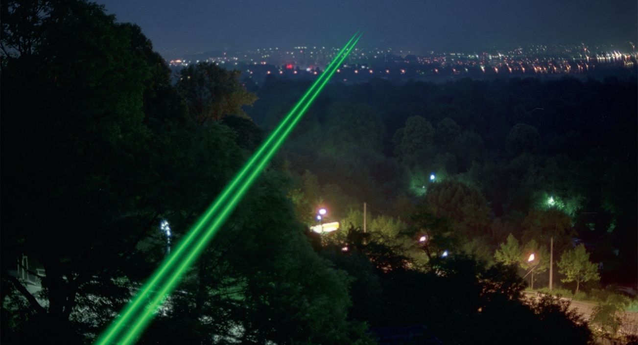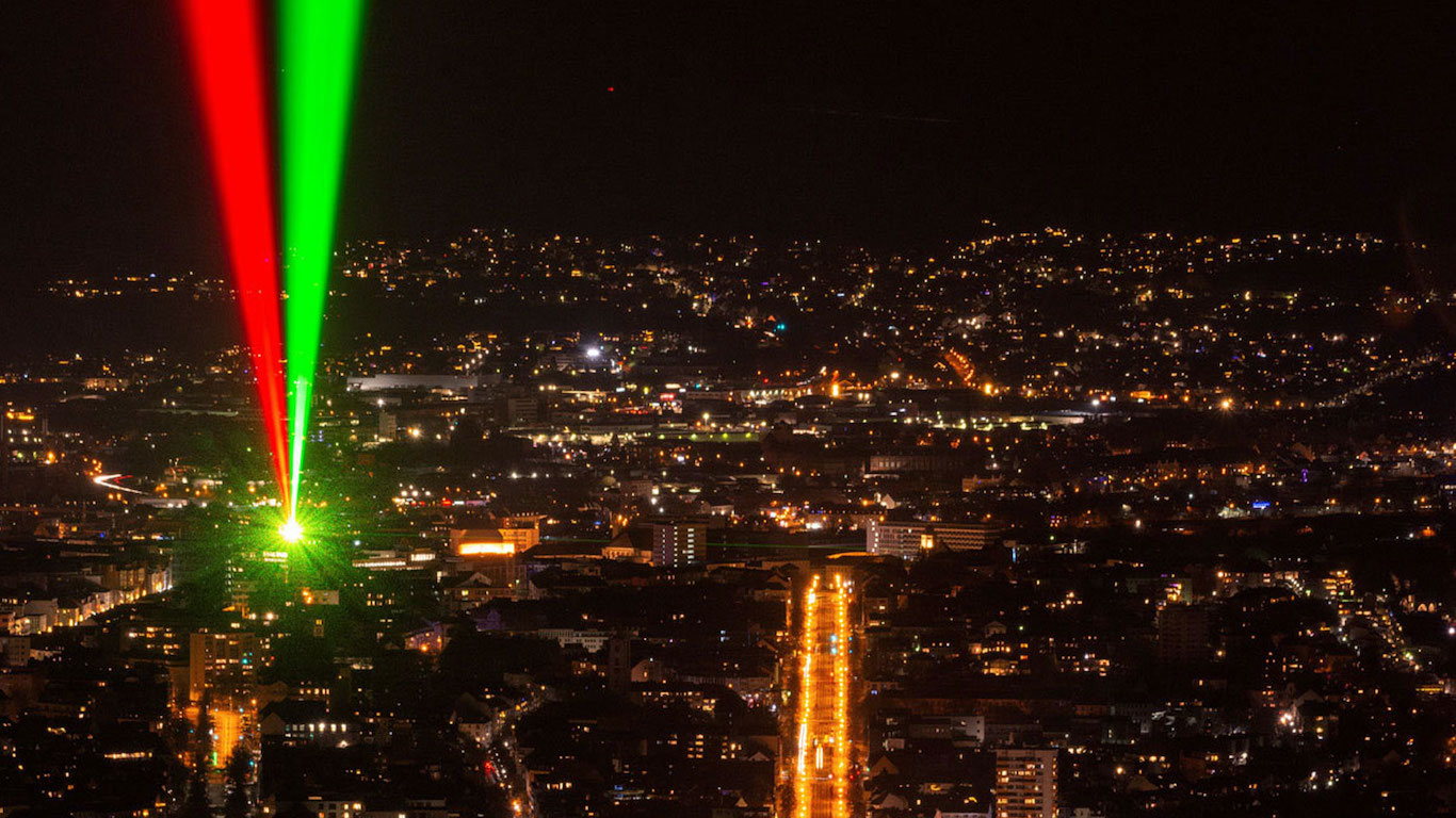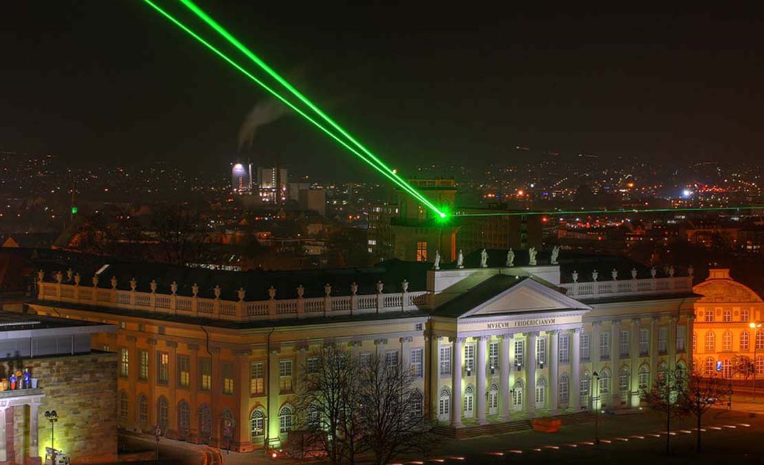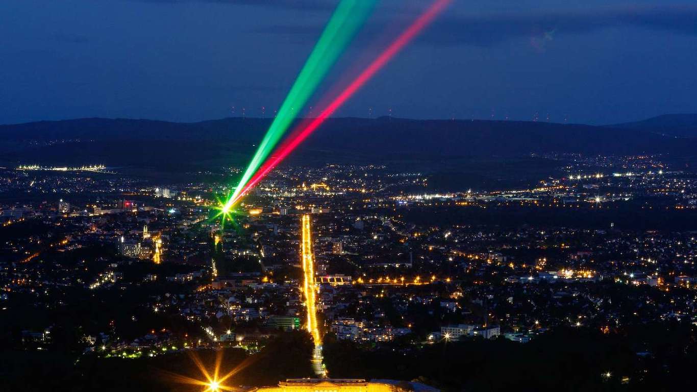 En 1977, el artista alemán Horst Baumann trabajó en tándem con el ingeniero Peter Hertha para poder construir el Laserscape Kassel. La instalación formó parte de la sexta edición de Documenta, la prestigiosa exposición quinquenal de arte contemporáneo. Hoy, casi 50 años más tarde, la creación de ambos sigue siendo insignia en Kassel, brillando sobre el casco urbano de la ciudad. Baumann es diseñador de comunicación y artista de iluminación en Düsseldorf. Su mayor interés se centra en la tecnología láser como elemento artístico para instalaciones en interiores y exteriores, un área que supo desarrollar y cuyo súmmum es sin dudas la obra aquí reseñada.