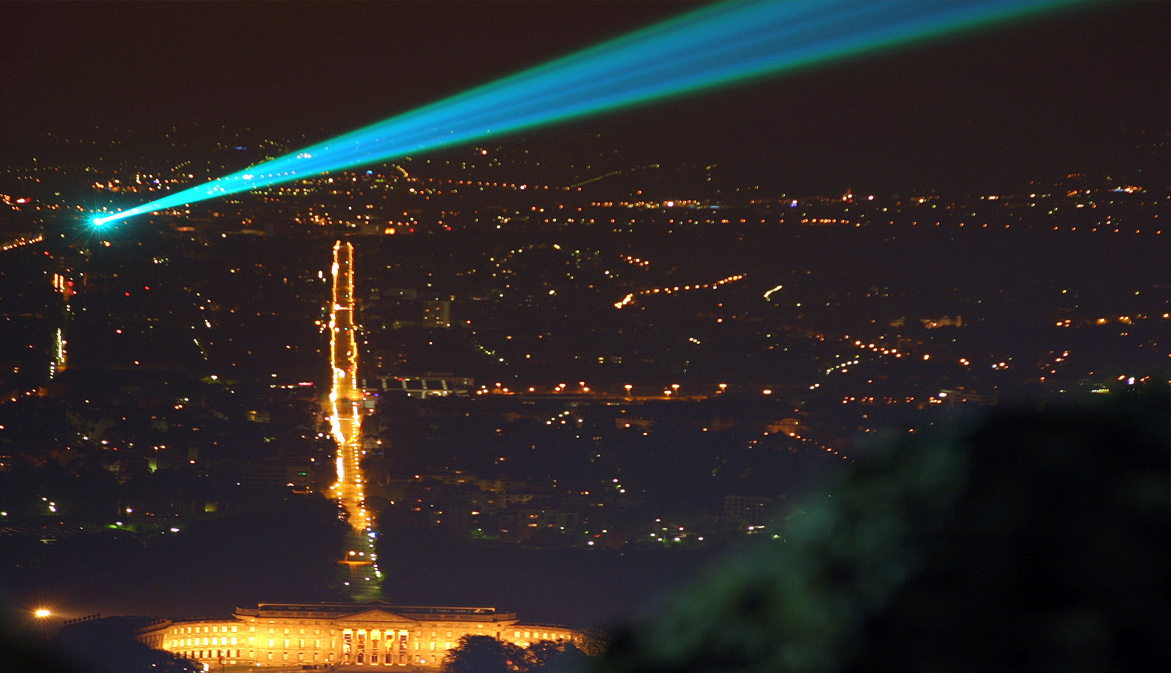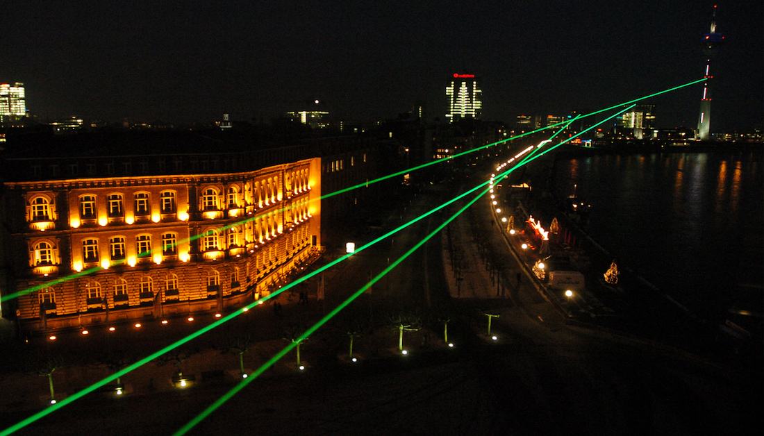 Laserscape es una obra de arte moderno cuyo valor no es solamente estético. Se trata de la primera instalación permanente de arte láser en un espacio urbano en el mundo. No es tan solo un “gesto decorativo”, ni mucho menos, nos referimos aquí a un emblema nocturno de la ciudad germana, un gesto inmaterial de movimientos permanentes con un poder capaz de vincular construcciones arquitectónicas de múltiples funciones y épocas históricas en una red de referencias espaciales y temporales.