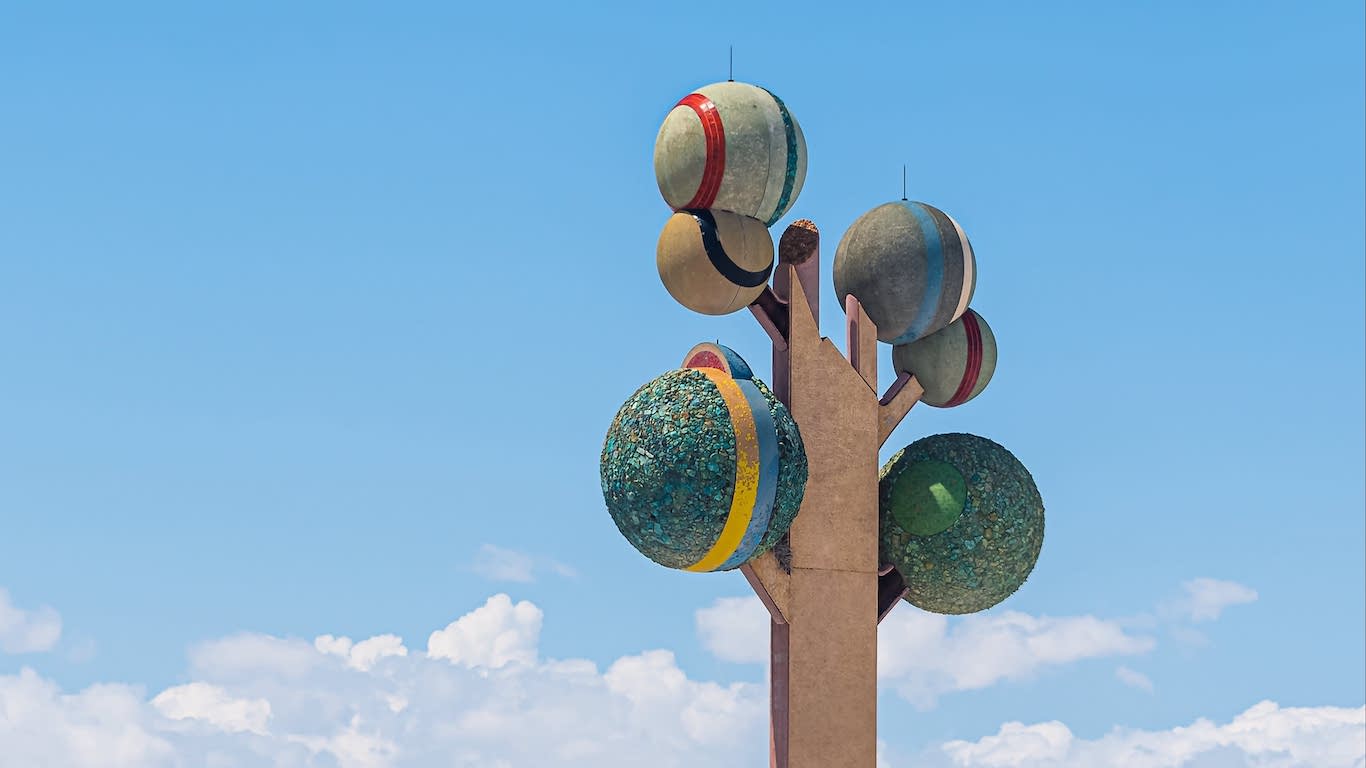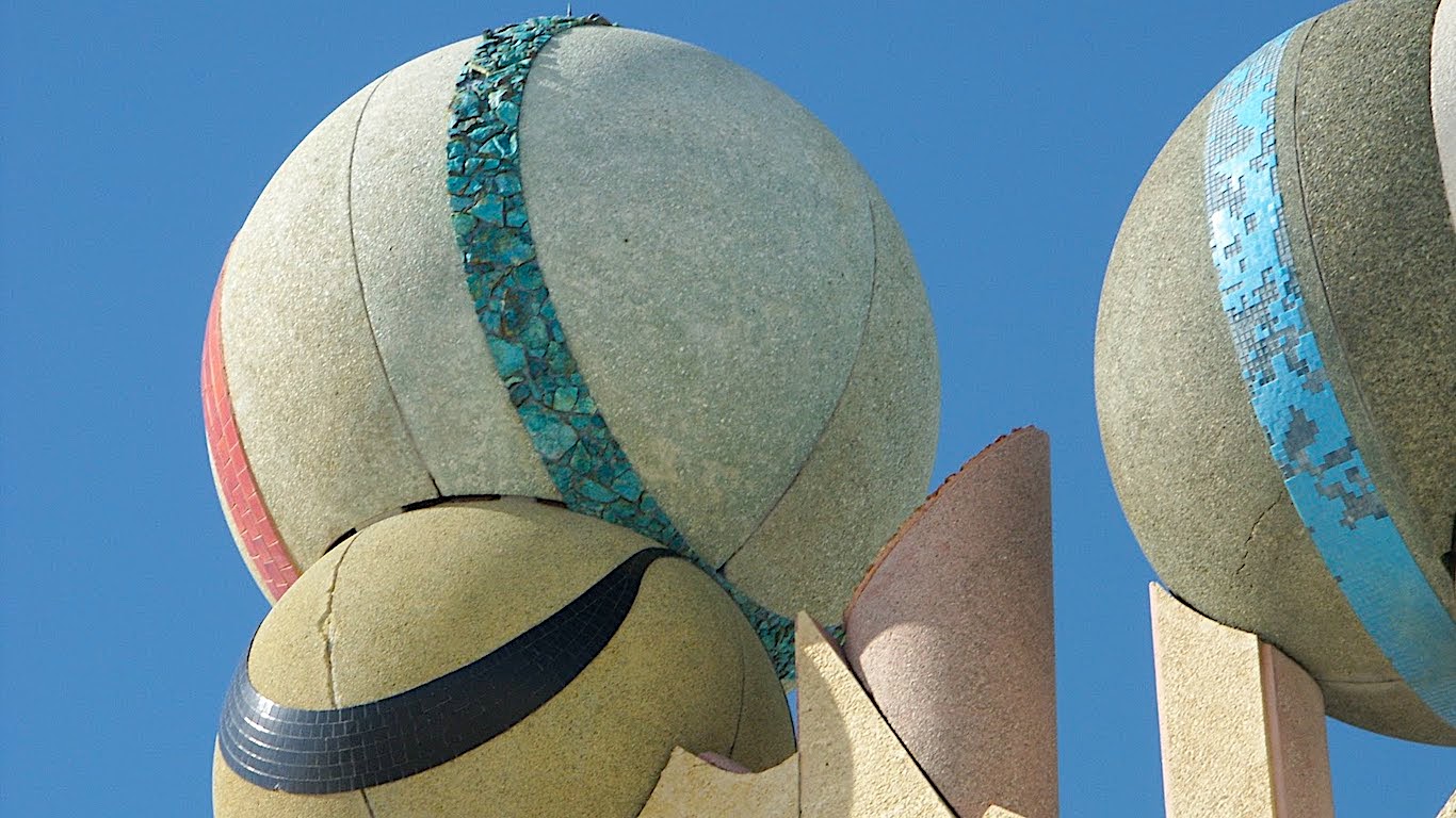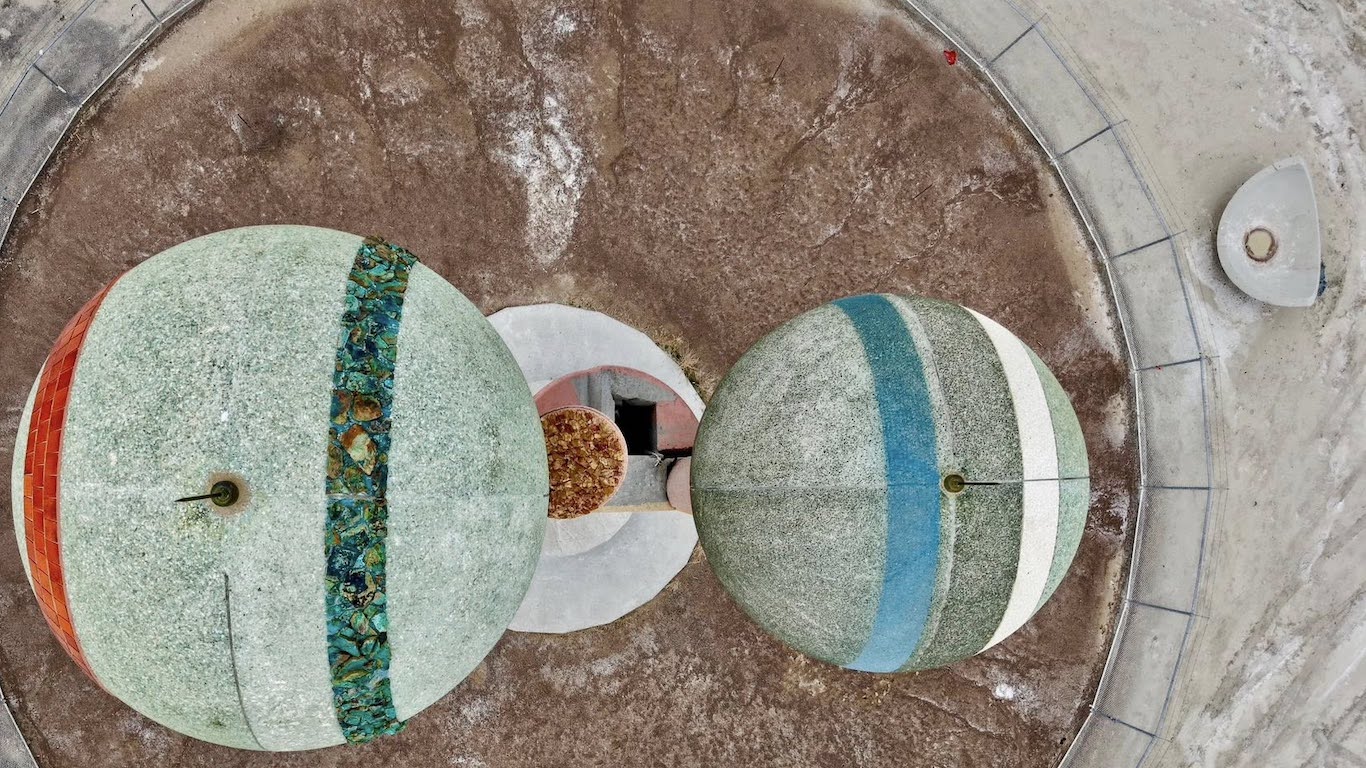 La estructura completa pesa 875 toneladas; fue construida con 225 toneladas de cemento, casi 2000 azulejos cerámicos importados de Italia, 5 toneladas de varillas de soldadura, 100 toneladas de roca de crisocola y 160 toneladas de acero. Cada esfera está recubierta con minerales locales que cambian de tonalidad según la luz y el clima. Y todo fue financiado personalmente por Momen, a un costo superior al millón de dólares, cifra que lo obligó a sacrificar parte de su patrimonio personal y a recurrir a préstamos.